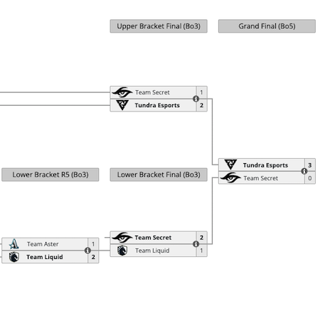 A quel punto dubitare del potenziale della squadra non è stato più possibile, ancora meno quando nella finale dell’Upper Bracket il quintetto guidato da Sneyking ha sfidato il Team Secret. Qui è arrivata la prima sconfitta, ma i Tundra Esports sono comunque riusciti a guadagnare la finalissima battendo la blasonata compagine per 2 vittorie a 1.