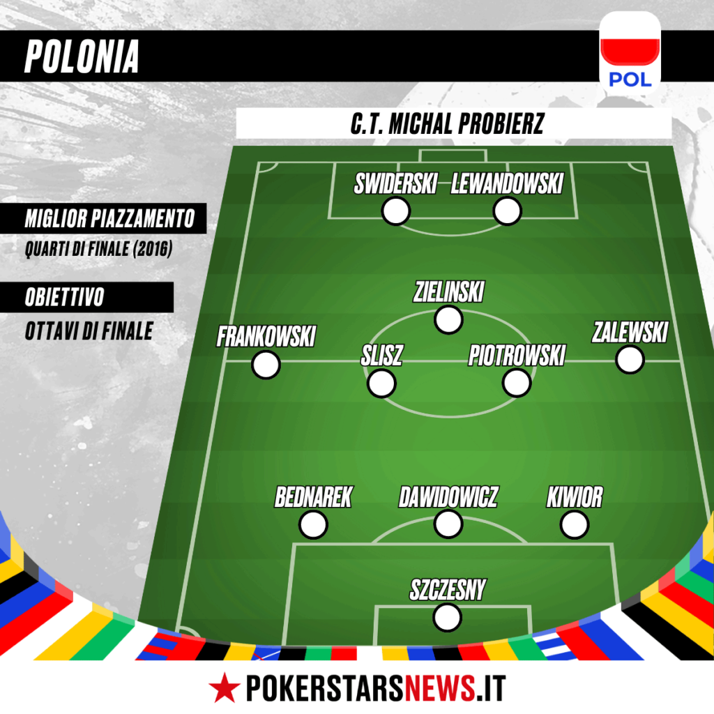 Epperò ad Euro 2024 la Polonia incontrerà, nel girone D, Francia, Olanda e Austria. Un gruppo a dir poco competitivo, dove Francia e Olanda sembrano già aver messo i propri artigli sui primi due posti del girone – utili al passaggio alla fase a eliminazione diretta. Ma attenzione all’Austria e alla stessa Polonia, che tanta meno certezza hanno di andare avanti quanta meno pressione. A guidare la speranza polacca c’è, come accennato, Michal Probierz, ex allenatore dell’Under21 promosso alla prima squadra nel settembre del 2023 per sostituire Fernando Santos.