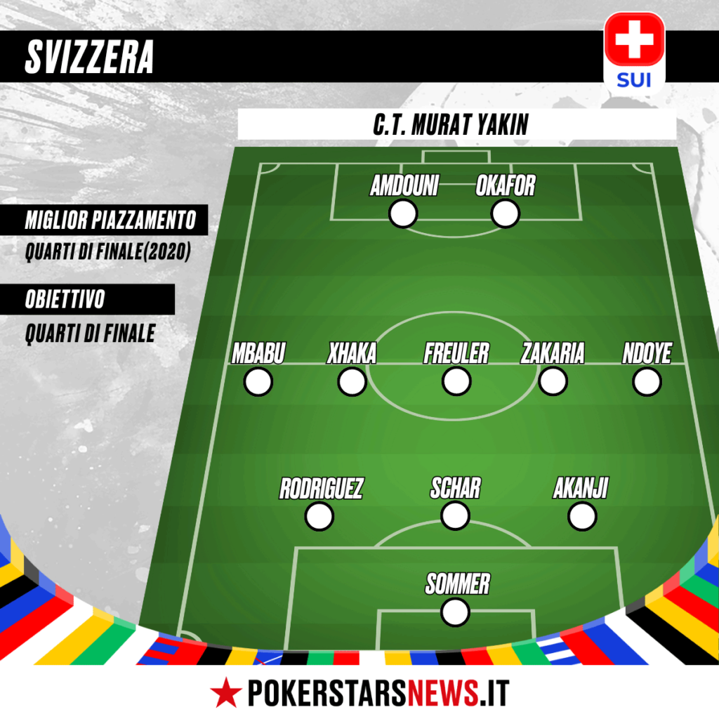 Dopo aver conquistato il miglior piazzamento della propria storia nel 2021, la Svizzera vuole confermarsi la mina vagante anche ad Euro 2024. Gli elvetici hanno faticato nel proprio girone di qualificazione, ma alla fine sono riusciti a strappare il pass e in partita secca possono davvero dare fastidio a chiunque in questa fase finale.