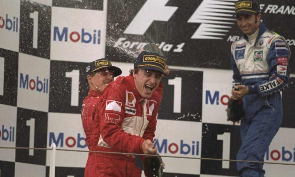 Eddie Jordan, stupito dal temperamento dell’irlandese, gli offre il rinnovo come pilota ufficiale nelle due stagioni successive. E se nella prima coglie sei punti mondiali (e anzi l’annata passa alla storia per una scorrettezza inflitta a Jos Verstappen), nella seconda centra addirittura un podio in Canada, tanto da suscitare l’interesse di Maranello, alla ricerca di un convincente secondo pilota a fianco di Micheal Schumacher, che in quegli anni stava per spiccare il volo verso anni e anni di successi.