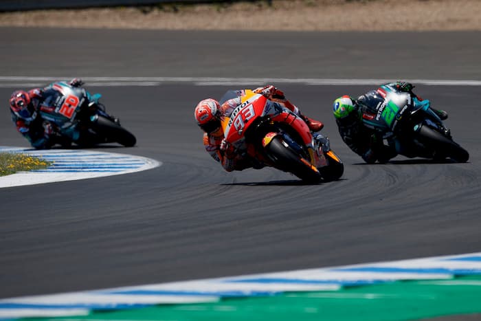 Si riparte da dove si era tutto fermato: Marc Marquez, con la sua Repsol Honda Team, davanti a tutti: MM93 è stato il pilota che ha fatto segnare il miglior tempo nelle prime prove libere del GP di Spagna, primo appuntamento del mondiale sul circuito di Jerez. Lo spagnolo ha chiuso 31 giri, facendo registrare il miglior tempo durante la 27° tornata con il tempo di 1’37.941. Il primo degli inseguitori è Alex Rins con la Suzuki, distanziato però di 252 millesimi mentre completa il podio della sessione Valentino Rossi.