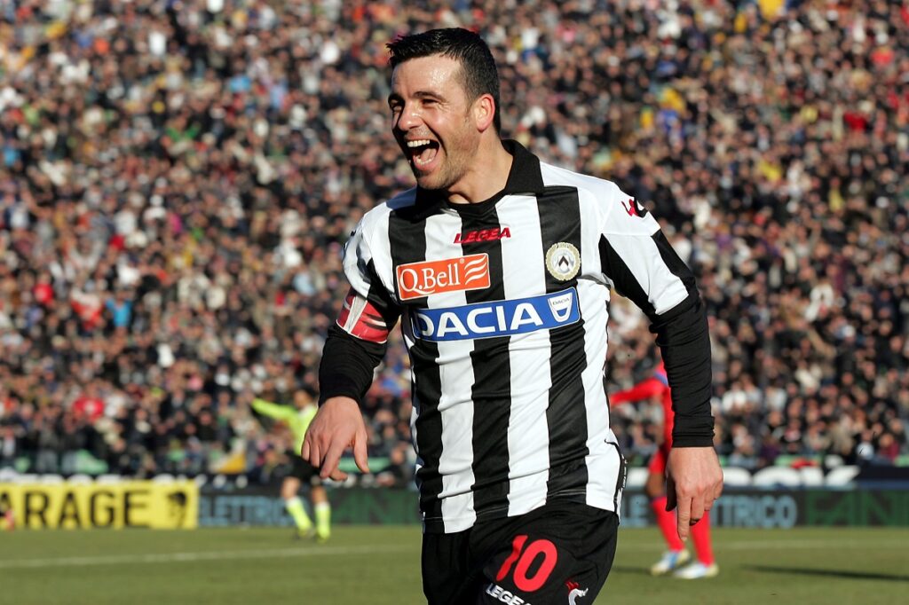 Il 31 agosto 2004, proprio all’ultimo giorno di mercato, mentre tutti si occupando dell’arrivo di Ibrahimovic alla Juventus, arriva il trasferimento a Udine, che cambierà la vita a Di Natale, il quale lascia Empoli dopo quasi duecento presenze. Inizia ad affermarsi subito con la maglia dei friulani, tant’è che già il primo anno dà il suo contributo per la prima, storica qualificazione dell’Udinese in Champions League. Nel corso degli anni continua ad andare in doppia cifra, formando un temibile duo con il concittadino Quagliarella, nel quale Totò agisce da seconda punta segnando e mandando a rete il compagno. Iniziano ad arrivare anche le gioie in Nazionale: dopo esser stato snobbato da Lippi, diventa una pedina fissa nella squadra di Donadoni, con la quale gioca anche l’Europeo 2008, fallendo però uno dei rigori decisivi nei quarti contro la Spagna. Nell’estate 2009 un’altra sliding door della sua carriera: Quagliarella passa al Napoli, Di Natale si trova a dover agire da centravanti. “Ma come, un centravanti alto uno e settanta?” Si chiese qualcuno, ignorando la rivoluzione portata avanti proprio in quegli anni dal Barcellona di Guardiola. E difatti l’altezza fu un fattore fondamentale per la straordinaria tecnica di Di Natale, che riuscì a reinventarsi dopo i trent’anni, firmando più di 20 gol e 30 presenze per tutte le sei stagioni successive. Un dato incredibile, per un giocatore che in molti si aspettavano in fase calante e in nuovo ruolo. Nel 2010 e nel 2011 vince addirittura due volte di fila la classifica cannonieri, rispettivamente con 29 e 28 gol, trascinando altrettante due volte successivamente l’Udinese in Champions League. Anche Lippi si dovette ricredere, e fu uno dei pochi giocatori sufficienti ai Mondiali 2010, senza contare l’argento a Euro 2012, dove giocò anche la finale con la Spagna, sua ultima partita in Azzurro. Dopo un’annata sottotono, nel 2016, decise di ritirarsi. Di gol ne ha realizzati 300 tondi tondi in totale, di cui 227 con l’Udinese e 209 in Serie A, come detto, il sesto di sempre. È il recordman di presenze e gol con i friulani sia nel massimo campionato che nelle competizioni Uefa. “Ma andare in una squadra che lotti per lo Scudetto?”, Si richiese qualcuno. Di Natale poteva, nel 2010, andare alla Juventus. Ma disse di no, e rimase fiero della sua scelta. Dichiarò che il cuore e la famiglia vengono sempre prima dei soldi. Totò è sempre stato così. Adesso sta studiando come allenatore per poter trasmettere, a quelli che saranno i suoi ragazzi, i valori che ha portato avanti per tutta la sua vita, dentro al campo e fuori.