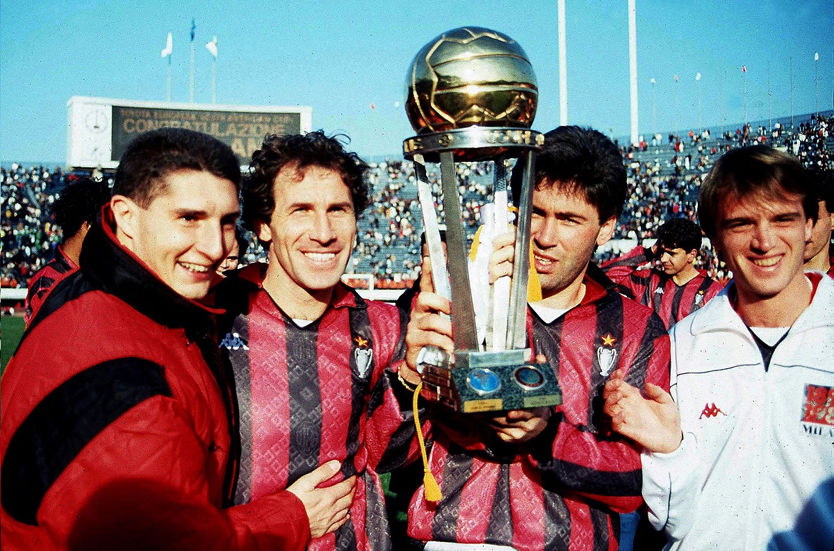In ogni caso si giocò alle 12 ora di Tokyo, Giappone, in un orario proibitivo per l’Europa. Il Milan, nonostante l’assenza di Ruud Gullit per infortunio, era nettamente la favorita della vigilia, data la notevole differenza tecnica delle due compagini. In porta c’era Giovanni Galli, la difesa era composta da Tassotti, Maldini, Costacurta e Baresi, a centrocampo Rijkaard, Ancelotti, Donadoni e Fuser, uno dei nuovi acquisti dell’anno, là davanti Daniele Massaro insieme a Van Basten. Maturana rispose impostando la partita sul pressing e il ricorso al fuorigioco, cercando di proporre una squadra similare a quella di Sacchi. Higuita, Escobar, Gomez, Herrera, Cassiani, Perez, Arango, Alvarez, Arboleda, Garcia, Trellez, questi erano gli undici colombiani in campo. La partita diventa subito scorbutica, dato che il Nacional respinge bene la manovra del Milan, bloccato a centrocampo. Le occasioni sono poche, e con il passare dei minuti cresce l’ansia per i meneghini. Nella ripresa Simone rileva Massaro in attacco, ma soprattutto Alberigo Evani sostituisce Fuser, portando più pericolosità. I rossoneri intensificano i loro attacchi, ma il risultato non cambia e si vai ai supplementari. Anche nell’extra time il copione rimane il medesimo, e in molti iniziano ad odorare il timore dei calci di rigore. Al 119esimo, Van Basten viene messo giù al limite dell’area. Evani si incarica di battere la punizione, e con una traiettoria perfetta batte Higuita e segna il gol dell’1-0. Dopo aver vinto la Supercoppa Europea appena dieci giorni prima, contro il Barcellona, il Milan mette in bacheca anche la sua seconda Coppa Intercontinentale, sollevata nel cielo di Tokyo, mentre Evani, giustamente, viene nominato miglior giocatore dell’incontro. Sarà un’annata ottima per il Milan, che però poteva essere perfetta. Il successo in Coppa dei Campioni venne bissato, grazie alla vittoria sul Benfica, ma in Coppa Italia i rossoneri si arrenderanno all’ultimo atto, contro la Juventus, mentre il campionato è quello passato alla storia per la monetina di Alemao e la fatal Verona, la quale diede al Napoli di Maradona e Careca il suo secondo Scudetto, con i rossoneri beffati al secondo posto. Tre trofei vinti, due persi all’atto finale, quattro giocatori su dieci nella top ten del Pallone d’oro: un’annata storica per il Milan.