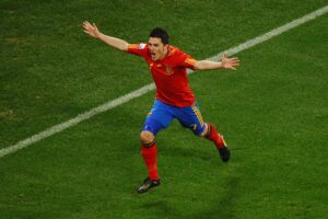 La stagione successiva mette a segno 31 reti, poi di nuovo 28, presentandosi così in uno stato di forma strepitoso ai Mondiali in Sudafrica 2010, a cui arriva con il suo cartellino già comprato dal Barcellona per 40 milioni di Euro. Villa è decisivo, segna 5 gol in 4 gare di fila, contribuendo con le sue marcature contro Portogallo e Paraguay alla marcia trionfale della Spagna. Questa volta la finale la gioca, non segna, ma è comunque campione del Mondo con gli spagnoli, per la prima volta nella loro storia. E poi il Barcellona, quel Barcellona che, specialmente tra il 2010 e il 2013, gli anni di Guardiola, è una della squadre migliori della storia. Villa si inserisce alla perfezione nei meccanismi guardioliani, segnando 23 gol nella trionfale stagione 10-11, conclusasi con la vittoria della Liga e della Champions League, in cui El guaje segna il 3-1 che chiude la partita con il Manchester United. La sfortuna caratterizza invece la sua seconda stagione, allorché una frattura della tibia lo costringe a stare fuori sette mesi, saltando l’Europeo 2012, vinto ancora dalla Spagna. In generale, è il miglior marcatore della storia della Nazionale iberica, con ben 59 gol. Dopo un’altra Liga vinta nel 2013, si trasferisce all’Atletico Madrid, dove rimane solo un anno, ma che anno: contro ogni pronostico i colchoneros vincono il campionato all’ultima giornata, proprio contro il Barcellona, arrivando anche in finale di Champions, beffati, però, dai cugini del Real Madrid. E poi Villa inizia a girare il mondo: gioca in Australia, seppur solo 4 partite con il Melbourne City, prima di accasarsi al New York City Fc, neonata squadra della MLS, il campionato statunitense. Nei suo anni americani Villa emerge, e ci mancherebbe altro, come uno dei migliori giocatori della lega, trascinando i suoi compagni ai playoff post regular season e mettendo a segno in totale 80 gol tondi tondi, ma questo non basterà a raggiungere dei trofei alla squadra newyorchese. L’ultima esperienza della sua vita calcistica è in Asia, più precisamente nei giapponesi del Vissel Kobe, dove firma le ultime reti della sua carriera vincendo anche la Coppa dell’Imperatore. Si ritira il primo febbraio 2020 David Villa, dopo una carriera piena di vittorie da giramondo del gol.