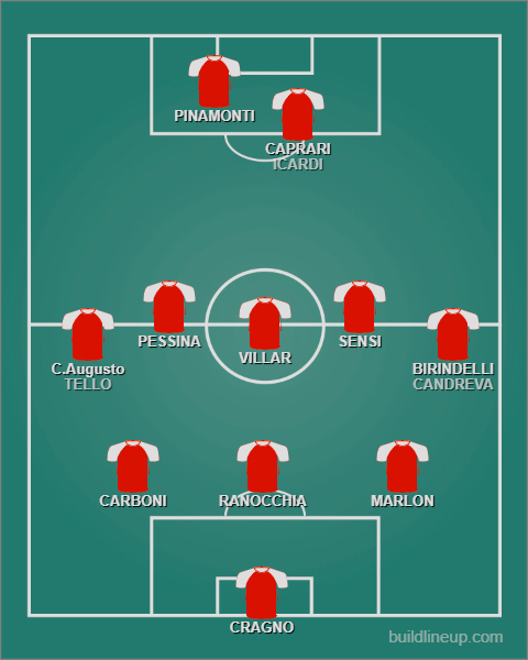 Il Monza dei sogni (3-5-2): CRAGNO; ACERBI (CARBONI), MARLON, RANOCCHIA; TELLO, VILLAR, SENSI, PESSINA, CANDREVA; ICARDI, SUAREZ (CAVANI).