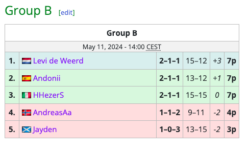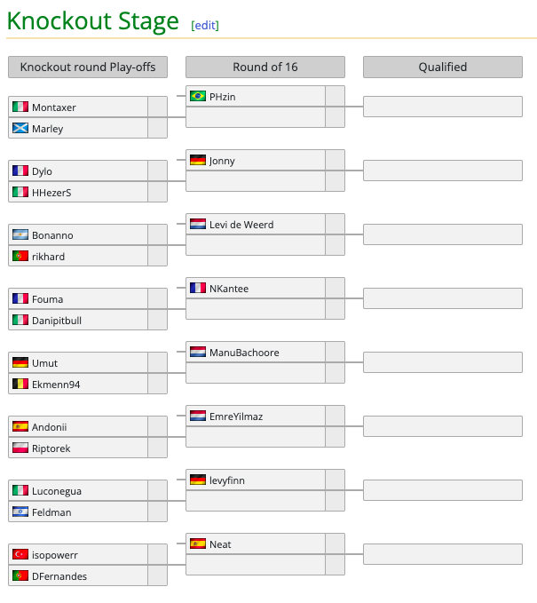 Pronostico invece rispettato, almeno a livello di nomi, dal Gruppo H che manda direttamente ai last 16 il francese Ilias “NKantee” Rhazzaz. Al preturno vanno invece il tedesco Umut “Umut” Gültekin, campione del mondo individuale nel 2022 e che ambiva probabilmente al primo posto nel girone, e lo scozzese Marc “Marley” Marley.