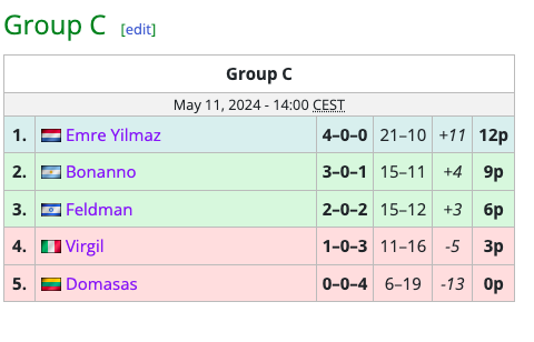 Sono loro i tre qualificati al second turno, nell’ordine in cui ve li abbiamo presentati. Virgil ha battuto (4-2) soltanto il giocatore lituano Domasas: troppo poco per sperare in un posto al KO Stage.