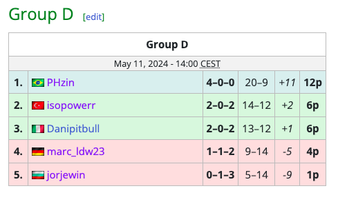 Alla fine, Danilo Pinto si è fatto agganciare a quota 6 punto da isopowerr, 2° in classifica per la migliore differenza reti. Primo posto e last 16 assicurati per PHzin.