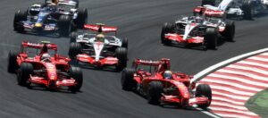 L’inglese mantenne comunque la pole position, ma la spaccatura fu netta, tant’è che sancì di fatto il divorzio tra le parti in causa già a fine stagione. I due della Ferrari erano praticamente appaiati: Massa a -15, penalizzato dalla squalifica in Canada, Raikkonen a -16, con due ritiri per problemi tecnici in Spagna e in Europa. Fernando si rifece sotto vincendo il GP a Monza, mentre Kimi trionfò in Belgio. Nel frattempo però la era arrivata la sentenza della FIA sul caso spy story, un’indagine di spionaggio industriale che aveva tenuto banco per tutta l’estate. La Federazione ha infatti accertato che Nigel Stepney, meccanico della Ferrari, ha diffuso dati privati relativi allo sviluppo della sua azienda a Mike Coughlan, capo progettista della McLaren. I piloti se la cavarono, mentre la squadra inglese fu squalificata dalla Classifica Costruttori 2007, regalando di fatto la vittoria alla Ferrari. Mancavano comunque ancora tre gare alla conclusione: in Giappone, sotto un nubifragio, trionfò Hamilton, mentre Alonso fu protagonista di un incidente dovuto all’aquaplaning. In Cina il colpo di scena: il primo ritiro stagionale di Lewis Hamilton, andato lungo sulla ghiaia nel tentativo di rientrare ai box, riaprì di colpo un Mondiale che sembrava già finito, grazie anche alla vittoria di Raikkonen. L’inglese manteneva tuttavia 7 punti sul finlandese e 4 su Alonso. All’ultima sfida in Brasile in tre si giocavano la vittoria, e la Ferrari disputò una gara perfetta, piazzando le sue due vetture al comando. Alonso non riuscì a superare il blocco rosso, mentre Hamilton, in preda alla foga dei suoi 22 anni, andò lungo all’inizio perdendo posizioni e riuscendo a recuperare solo fino al settimo posto. Contro ogni pronostico, Kimi ce l’aveva fatta. Totalizzò 110 punti, contro i 109 dei due compagni ma rivali della McLaren. Fu una gioia enorme in un Mondiale complicato in campo e fuori per la Ferrari, e tuttora l’unico trionfo in carriera di Raikkonen. Ma mentre Alonso e Massa non riuscirono a confermarsi negli anni successivi, già nel 2008 tutti capirono che L’era Hamilton era pronta a iniziare.