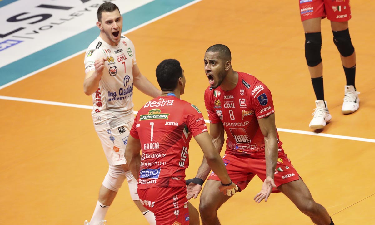 La vittoria dei marchigiani passa sicuramente dalle mani degli attaccanti:  Gabi Garcia Fernandez (15 punti) e  Ricardo Lucarelli (10) con la preziosa aggiunta dei 9 sigilli del centrale  Robertlandy Simon (3 muri), hanno preso per mano la squadra confermandosi in grande forma al comando della classifica generale, a pari punti proprio con Trento (19) e con quattro lunghezze di vantaggio su Perugia (15).