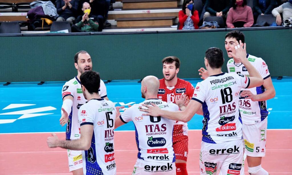 L’Itas Trentino ha cominciato al meglio la settimana che porta alla Final Four di Coppa Italia 2022 di Bologna. La formazione di Lorenzetti ha completato il calendario dei suoi recuperi superando di slancio per 3-0 (25-17, 25-21, 25-20) la Tonno Callipo Calabria Vibo Valentia nell’incontro valido per il quindicesimo turno di regular season.