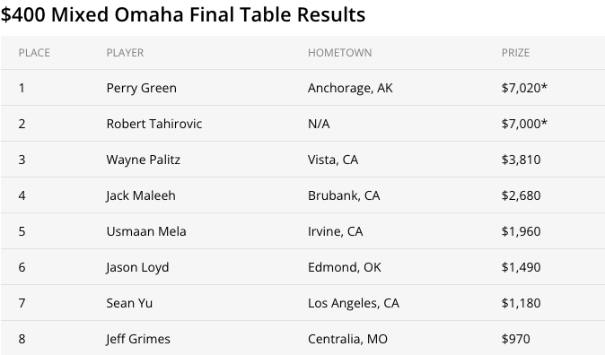 Green si è lasciato alle spalle 90 avversari e ha concluso vittorioso il testa-a-testa dopo aver splittato il premio con il runner-up. Per certificare il risultato, ecco il payout di FT riportato da PokerNews: