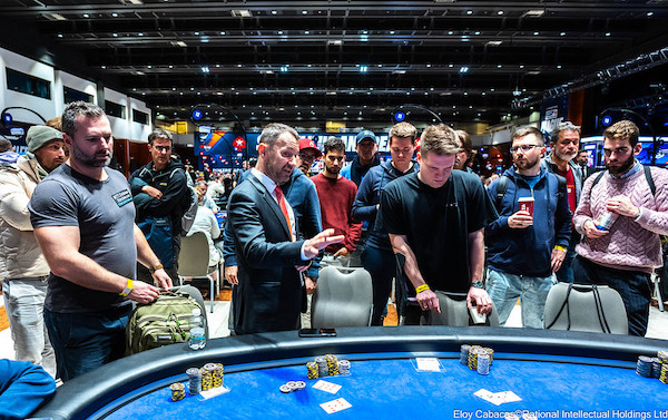 Su un board che mostra J♣6♠2♣4♣8♥, Remigiusz Wyrzykiewicz (l’aggressore su tutte le street) punta 3.850.000 chips. Il suo avversario, Ercan Atmaca, inizia a contare il suo stack separando le pile di chips e poi bofonchia qualcosa. A quel punto il polacco, chipleader allo start del final table, mostra A♣A♠ pensando che l’olandese abbia detto “Call”. Atmaca reagisce immediatamente, spiegando di aver chiesto al dealer se la bet fosse di 4 milioni. La parola che ha usato – dice lui – è “Four”.