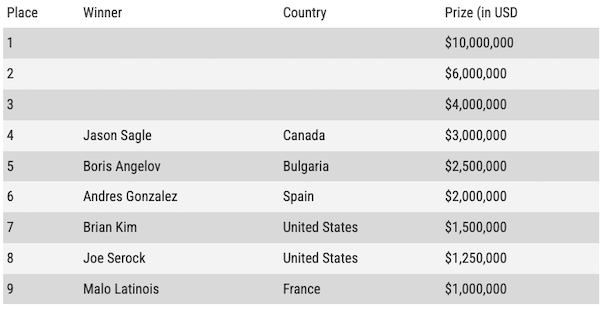 Il triumvirato al comando è definito da. Jonathan Tamayo (199 milioni), Niklas Astedt (191), Jordan Griff (187). Rimane solo il quarto incomodo, il veterano canadese Jason Sagle, autore fino a quel momento di una gara molto prudente e senza troppi scossoni.