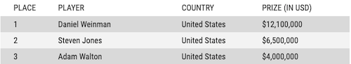 Daniel Weinman è a tutti gli effetti un professionista del poker che macina risultati dal 2010. Prima di questa vittoria vantava già 128 in the money nei tornei live, un terzo dei quali realizzati alle WSOP, compresi 7 final table e una vittoria ottenuta nel 2022 con l’evento $.1000 Pot Limit Omaha. Nel suo palmares ci sono anche un anello del WSOP Circuit e due titoli WPT di alto livello (Tournament of Champions e Borgata Winter Open entrambi nel 2017). Il tutto per 3,7 milioni di dollari già incassati. Ma è il 129° ITM che adesso fa tutta la differenza del mondo, perché da solo quadruplica quanto Weinman aveva vinto in precedenza.