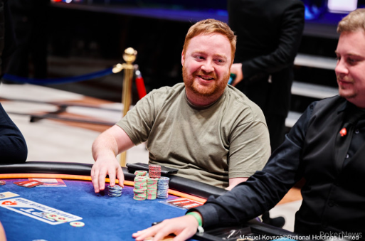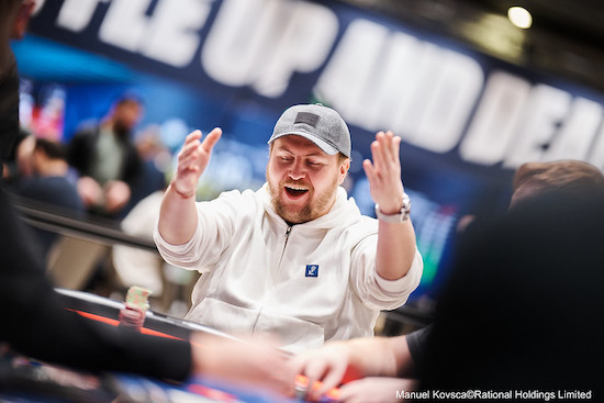 Poco dopo arriva il colpo che è un segnale di come andrà la giornata. Il livello è sempre lo stesso quando Max Neugebauer rilancia 100k da cutoff con A♠K♣. Kyte decide di shovare da SB in steal, perché in mano ha solo un modesto K♠5♠. In posizione di Big Blind c’è però l’olandese Dejan Jakovljevic e anche lui ha qualcosa da dire: 9♠9♣ e call con le ultime 850k. Il vincitore del Main Event WSOPE 2023 si unisce mettendo circa 800k. Allo showdown Kyte è stradominato: 10,5% contro 35% di Neugebauer e 53% di Jakovljevic. Il norvegese ammette “ho fatto una ca…ta!” ma la Dea Bendata non se ne accorge: 2♣7♦K♠K♥5♥, fullhouse per Kyte che fa un doppio out e decolla con 11,5 milioni nello stack! Neugebauer è 15°, Jakovljevic 14°.