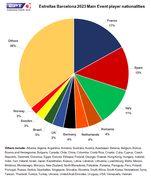 Ne approfittiamo per ricordare che saremo in sala fino alla fine per aggiornarvi in diretta sull’andamento del torneo, ovviamente con un occhio di riguardo per i numerosi players italiani. Lo dimostra anche lo split per nazioni: l’Italia è al terzo posto, con un 11% del totale dei giocatori iscritti.
