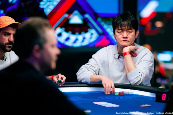 Con solo tre giocatori rimasti, Paul Runcan insiste ad attaccare, facendo leva sul peso del payout. Tra il terzo e il secondo posto c’è un salto di circa 250mila euro e sia Marques che Park evitano di incrociare Runcan, sperando di raggiungere almeno la seconda piazza. Il portoghese prova a rubare al sudcoareno: shova preflop con 10♠9♦ ma trova il call di Park che mostra A♠3♦. L’asso regge e i due stack tornano appaiati.