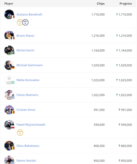 Archiviati i due Day1, Giuliano Bendinelli ha iniziato il final day (Day2) da chipleader su 96 giocatori. Questa la top 10: