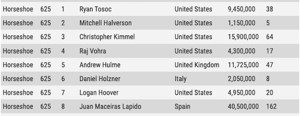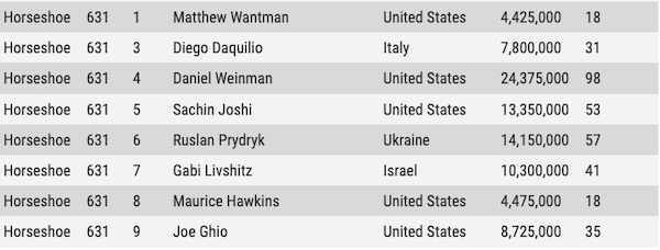 Quello che segue invece è il tavolo di Holzer per il quale però gli avversari contano relativamente, almeno allo start visto che il suo gioco sarà ridotto al classico push-or-fold.