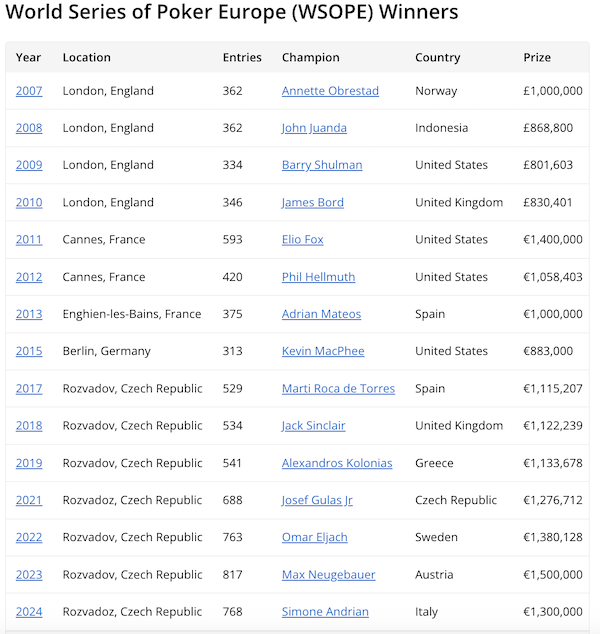 Un’edizione che conferma le WSOP Europe uno dei festival pokeristici più grandi e attesi in Europa.