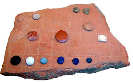 Alcuni scavi archeologici nell’area di Colchester (Regno Unito) hanno riportato alla luce una scacchiera con pezzi per il Ludus Latrunculorum. La scacchiera è suddivisa in 12×10 quadrati (le caselle) e ci sono 24 pezzi di vetro, 12 bianchi e 12 blu.