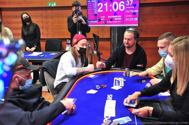 Il torneo ormai è in fase push-fold. 10 minuti dopo l’eliminazione di Jantunen, Alejandro Lococo rilancia a 1,5 milioni da hijack. Il lussemburghese Yann Nasser mette quello che gli resta, cioè 1,7 milioni, Lococo aggiunge il resto e si va allo showdown: Nasser ha J♦10♠, l’argentino invece i connectors più bassi, 8♥6♥. Il flop però premia il secondo: 8♣3♥2♦. Il turn 3♠ e il river 4♣ mantengono la top pair di Lococo che elimina Nasser al 5° posto.