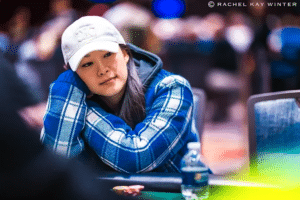 Rimaniamo nel campo dei colpi “cooler”, ma con un esito decisamente diverso. I bui sono gli stessi della mano precedente, ma al tavolo c’è Arden Cho, attrice di serie tv americane (Teen Wolf, Miss 2059, Chicago Med e Partner Track) con la passione per il poker ($75k il suo miglior risultato ad oggi, 55°posto nel WPT Championship 2022) che sul flop 5♠A♦Q♦ c-betta 2.100 da BB. Il call del suo avversario, in posizione di cutoff, fa arrivare un J♠ al turn. La giocatrice punta altre 7mila chips, ma riceve un raise da 20k. A questo punto, la Cho decide di andare all-in con A♥A♠ in mano, set di Assi floppato. Il problema è che il suo avversario chiama e gira sul tavolo K♣10♠: scala a incastro chiusa al turn! L’americana deve sperare negli out per il fullhouse (9) o il mono out A♣ che le darebbe poker: il river le consegna proprio quest’ultimo!