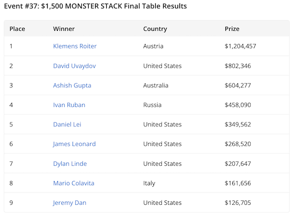 Il Monster Stack si è concluso con l’austriaco Klemens Roiter che in heads-up ha battuto proprio Uvayadov.