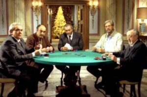 Tuttavia, dal momento che il Five-card draw americano corrisponde al nostro poker con cinque carte (poker all’italiana), vogliamo chiudere con la clip di un film realizzato nel Belpaese nel 1986. Pupi Avati, coadiuvato da 5 ottimi attori, racconta attraverso una partita di poker le storie, le speranze, le amicizie, quelle vere e quelle ingannevoli, dei partecipanti alla serata. Parla cioè di vita e di persone e per questo, almeno nell’opinione di chi scrive, è uno dei racconti più completi e riusciti che il cinema abbia mai fatto del poker.