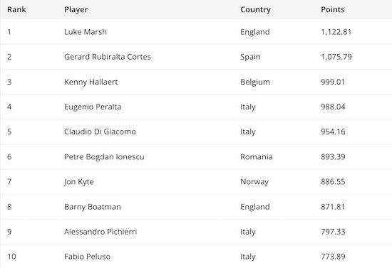 La classifica di mezzo che riguarda buy-in da €/£/$1.000-€/£/$4.999 parla molto italiano, ma non al primo posto. In testa c’è infatti l’inglese Luke Marsh con 1.122,81 punti, ottenuti grazie a sei piazzamenti ITM, due tavoli finali e quasi €140.000 incassati nell’High Roller di Monte Carlo.