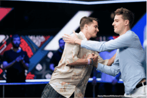 I duellanti sono il francese Thomas Eychenne, poi vincitore del torneo, e Anton Suarez, n.12 della All-Time Money List svedese con 3 milioni di dollari incassati nei tornei live e in quel momento giocatore più titolato al final table.