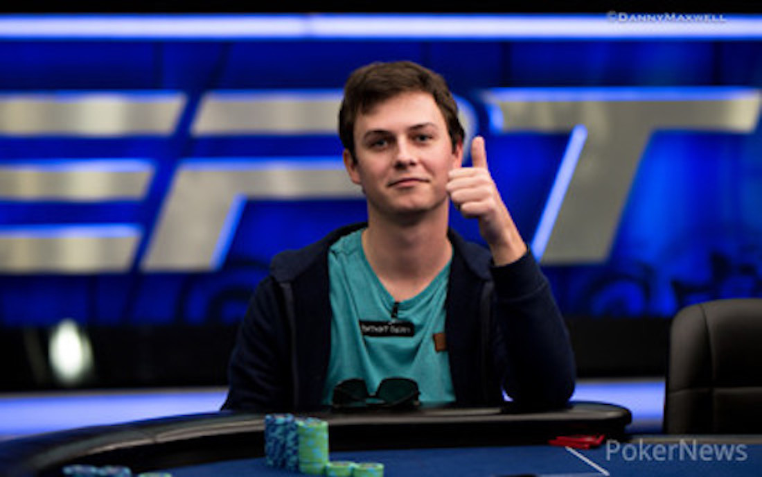 Subito dopo il polacco chiude doppia coppia al river con in mano 9♠3♠ contro un altro avversario che lo dominava con la top pair centrata al flop.
