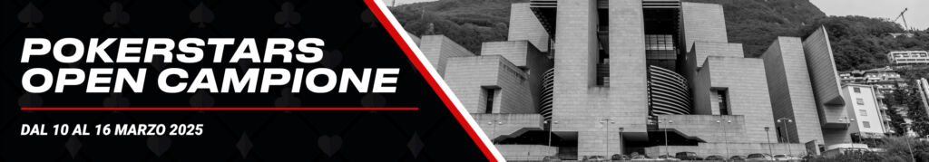 | 16 marzo (Dom) | 13:00 | #6 (Final) | PokerStars Open Main Event – 75 Min Levels – Unlimited Re-Entry | €1.100 | 30.000 |