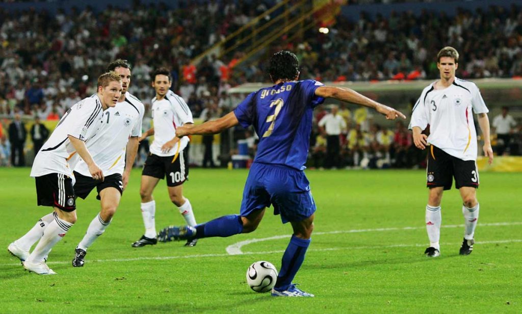 La corsa di Grosso che ricorda quella di Tardelli al Mundial dell’82, il «non ci credo» del terzino azzurro che scuote la testa e il mignolo della mano destra correndo verso il centro del campo, travolto dall’estasi collettiva degli Azzurri, che come lui non riescono a svegliarsi dal sogno. Buffon che gli salta sopra, Del Piero che quasi mantenendo un filo di lucidità gli chiede di tornare in posizione, perché mancano due minuti alla fine e contro questa Germania sono un’eternità. E poi ancora, Klinsmann incredulo che guarda i suoi e prova a scuoterli. Il pubblico di casa sovrastato dalle urla di un popolo intero, che grida dalla Penisola fino a Dortmund, indimenticabile ed infernale teatro della contesa.