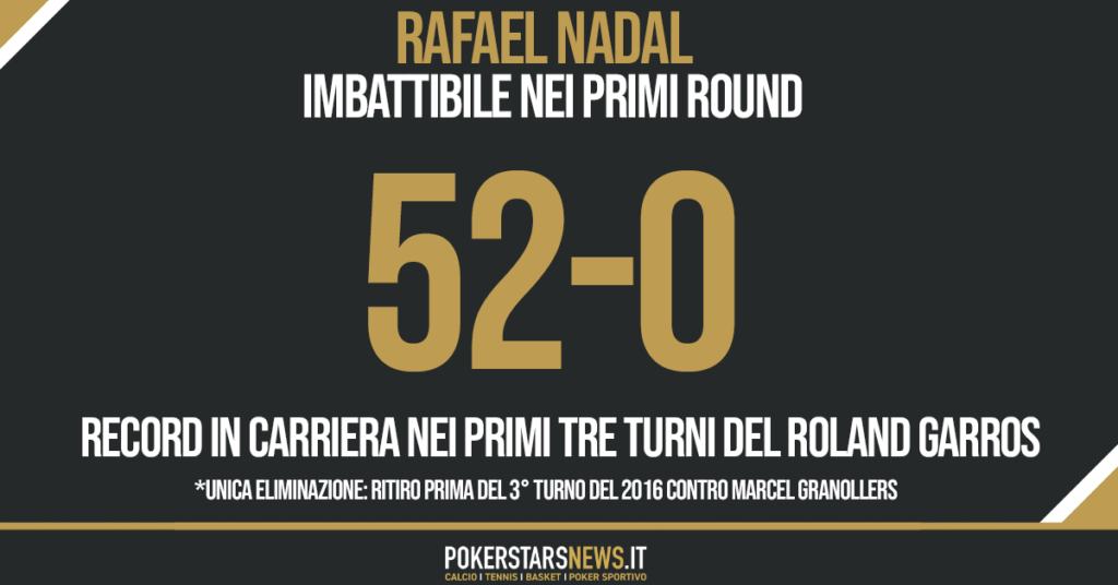 Il maiorchino, infatti, ha un record intonso nei primi tre turni del Roland Garros, con un nettissimo 52-0.